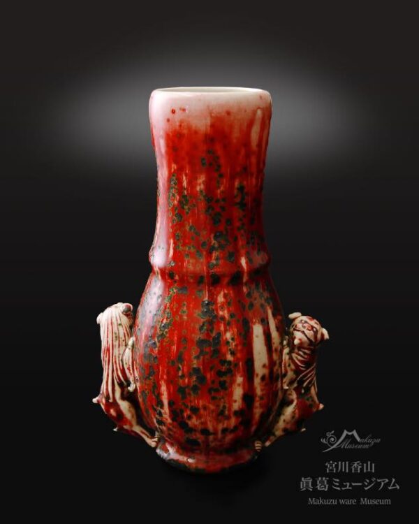洋紅釉 獅子付花瓶